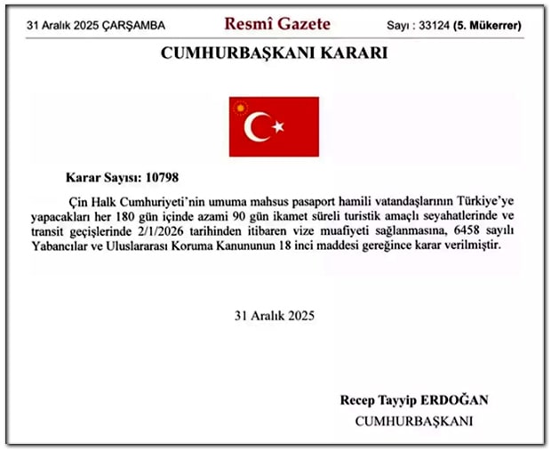 transit geçişlerinde 2 Ocak tarihinden itibaren; vize muafiyeti sağlanmasına karar verildi.