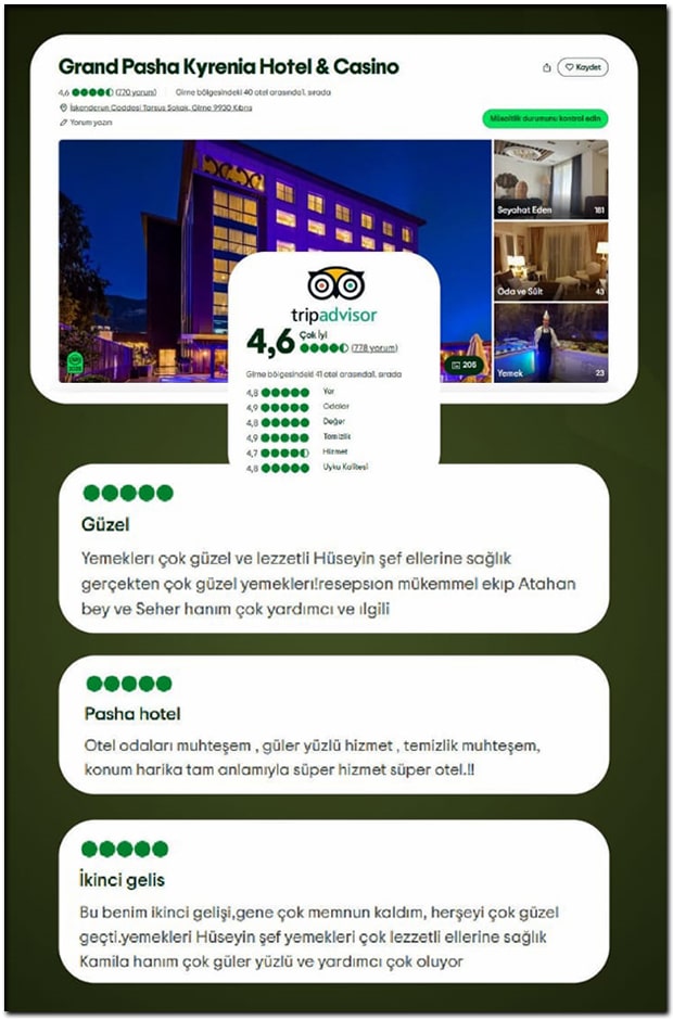 doğrudan misafirlerimizin yorumlarıyla, bu başarıya ulaşmak;